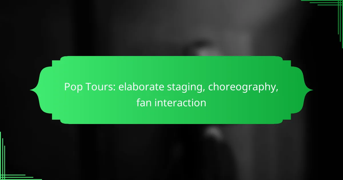 Pop tours are a vibrant fusion of elaborate staging, dynamic choreography, and interactive fan experiences that elevate live performances to new heights. By incorporating advanced technology and innovative designs, these tours create immersive environments that captivate audiences and foster a deeper connection with the artists. The choreography not only enhances the visual appeal but also transforms concerts into unforgettable spectacles that resonate with fans long after the final note is played.
